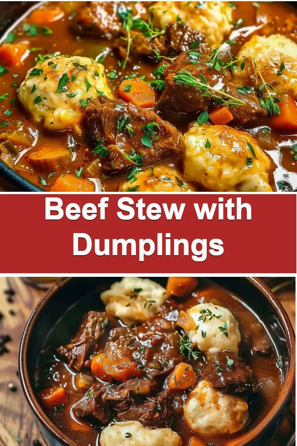 Keywords: beef stew, dumplings, comfort food, family meal, stew recipe