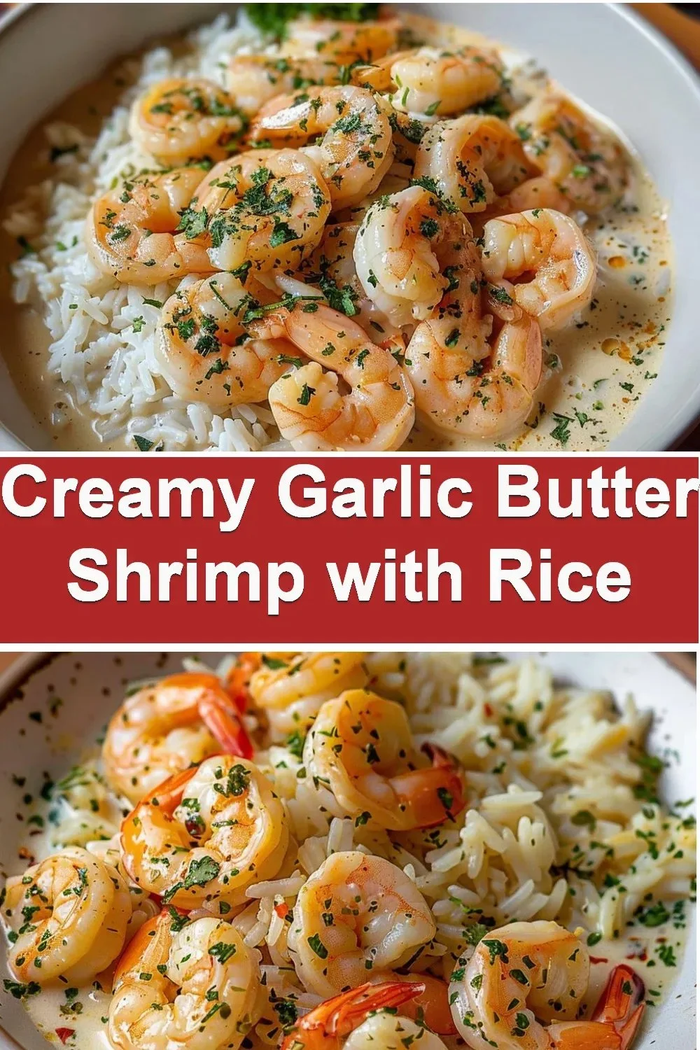 A quick and comforting dish featuring juicy shrimp in a rich garlic butter sauce served over warm rice.