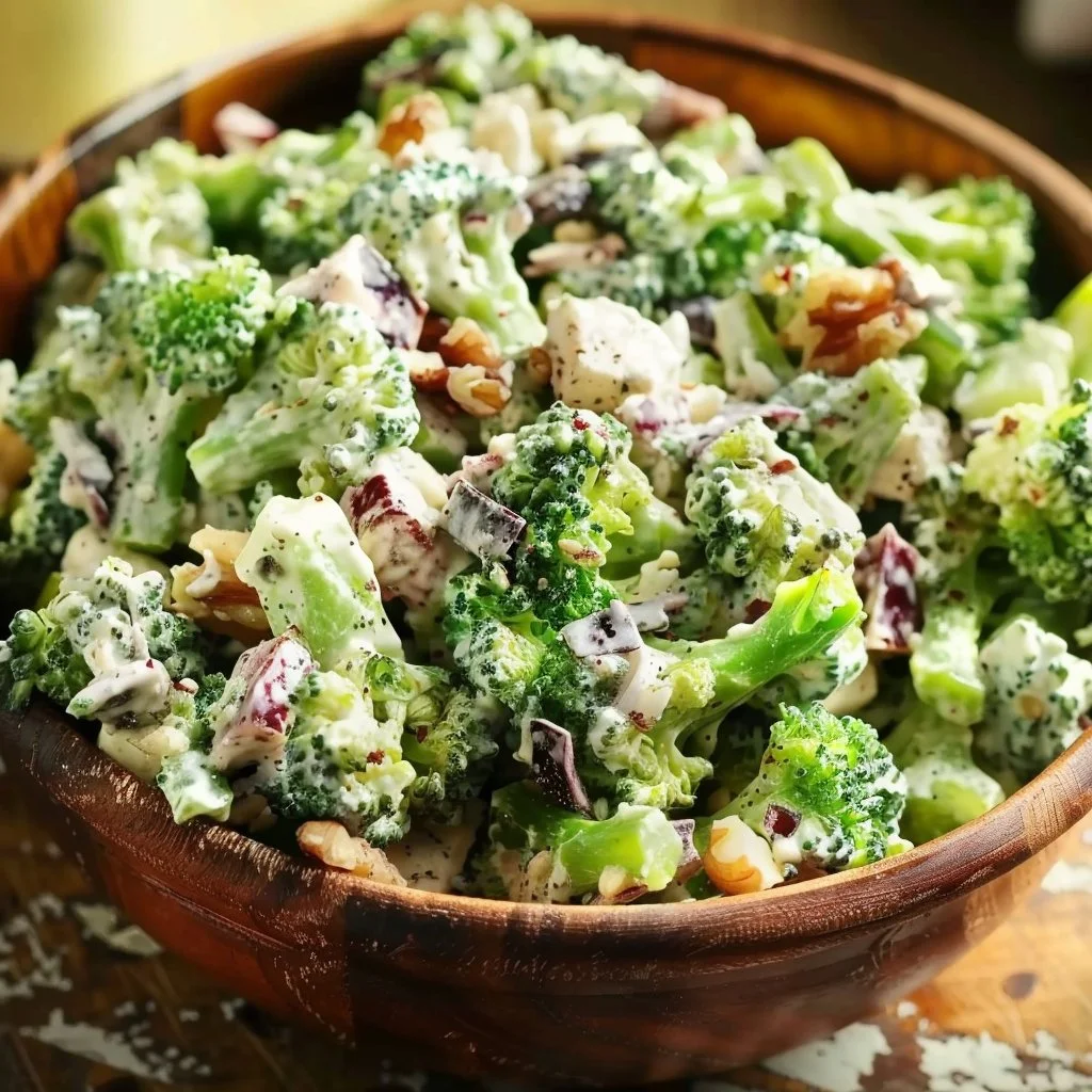 Make the salad in three simple steps: cut the vegetables, mix the dressing, and toss everything together. Use cold broccoli for a crisp bite. For a creamier texture, let the salad chill for 30 minutes before serving. This dressing idea is similar to the creamy sauce used in other simple broccoli pasta recipes like creamy rotisserie chicken broccoli pasta.