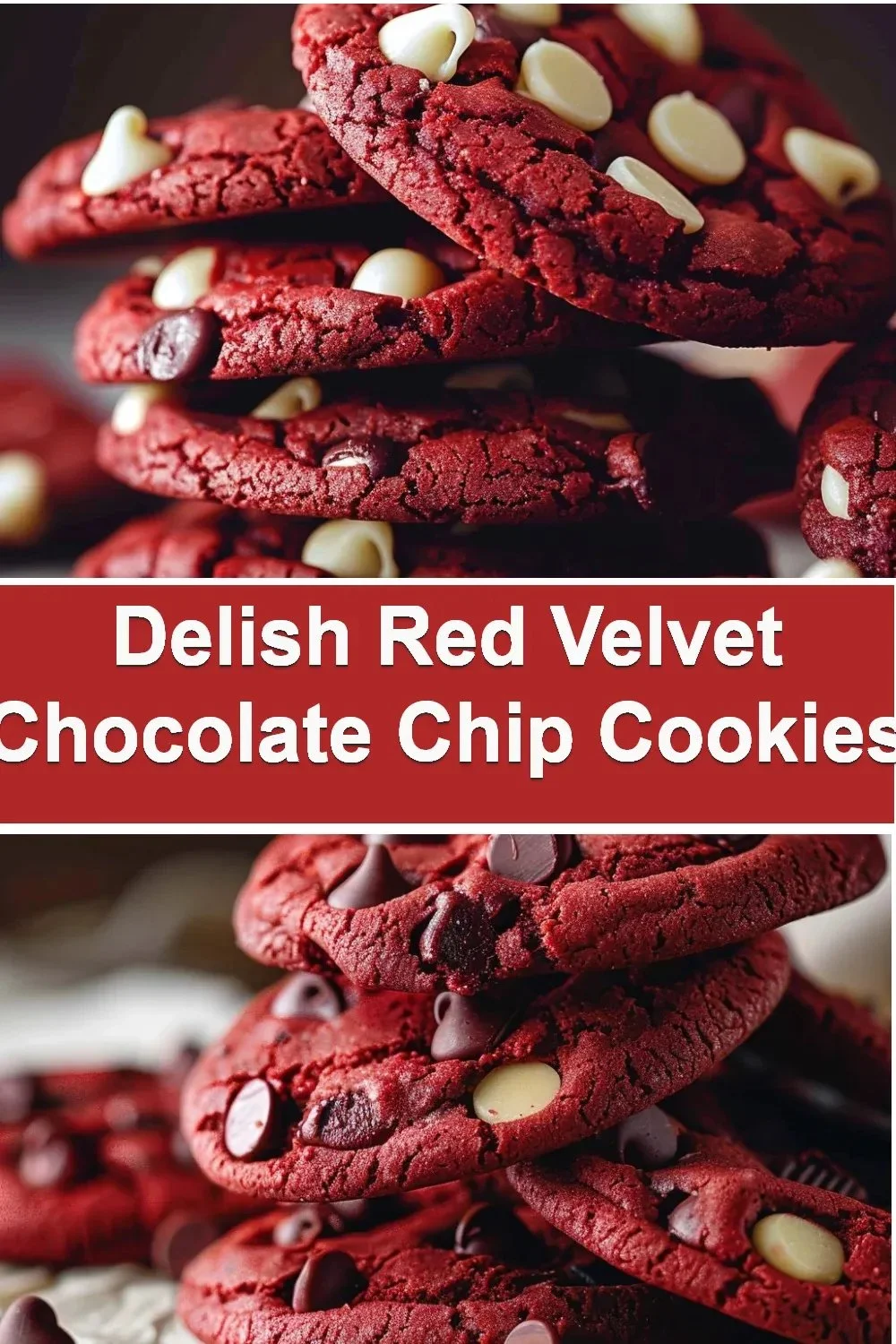 Keywords: red velvet, chocolate chip cookies, festive dessert, easy baking, holiday treats