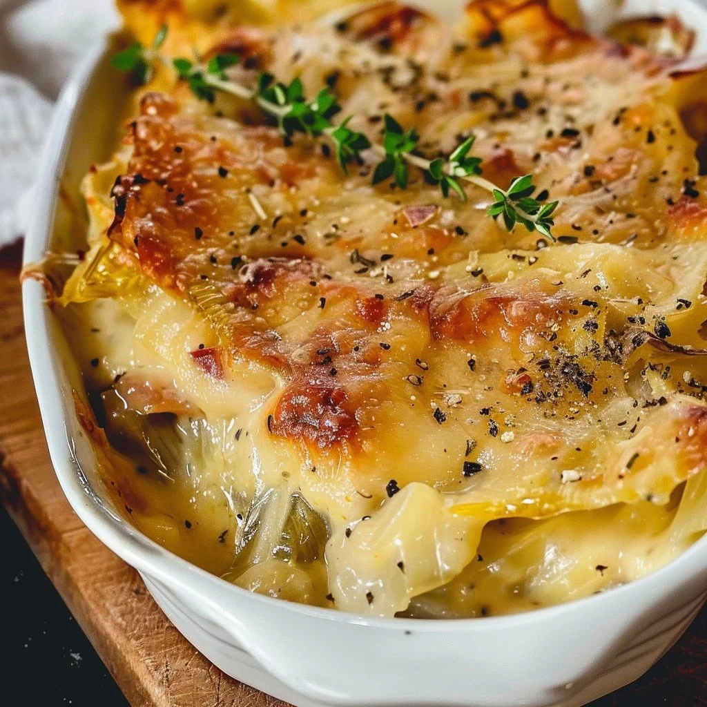 A simple, warm dish with soft cabbage and melted cheese, perfect for a quick side that feels special.