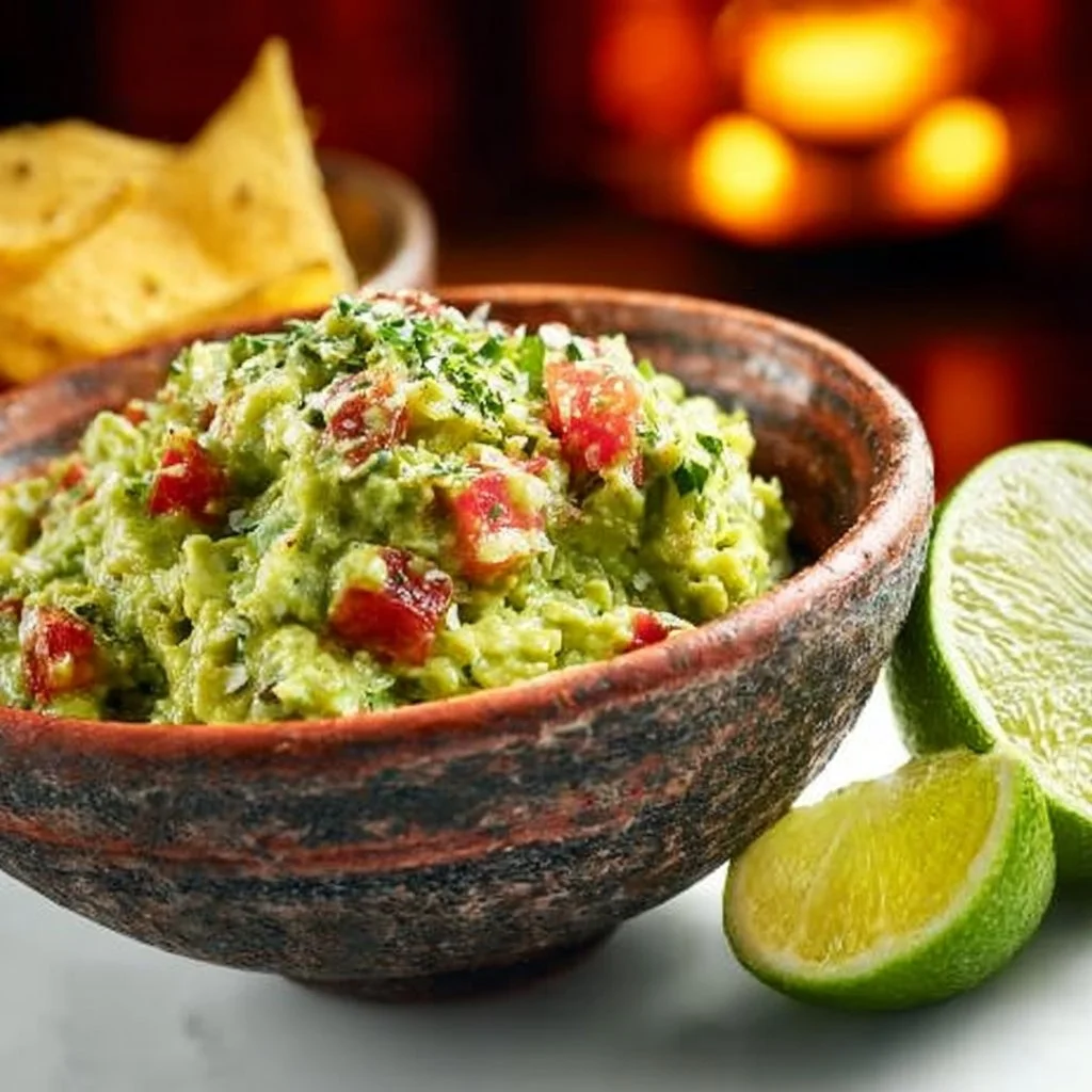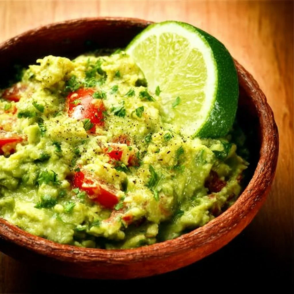 A fresh and creamy guacamole made with ripe avocados, lime, and spices, perfect for parties and gatherings.