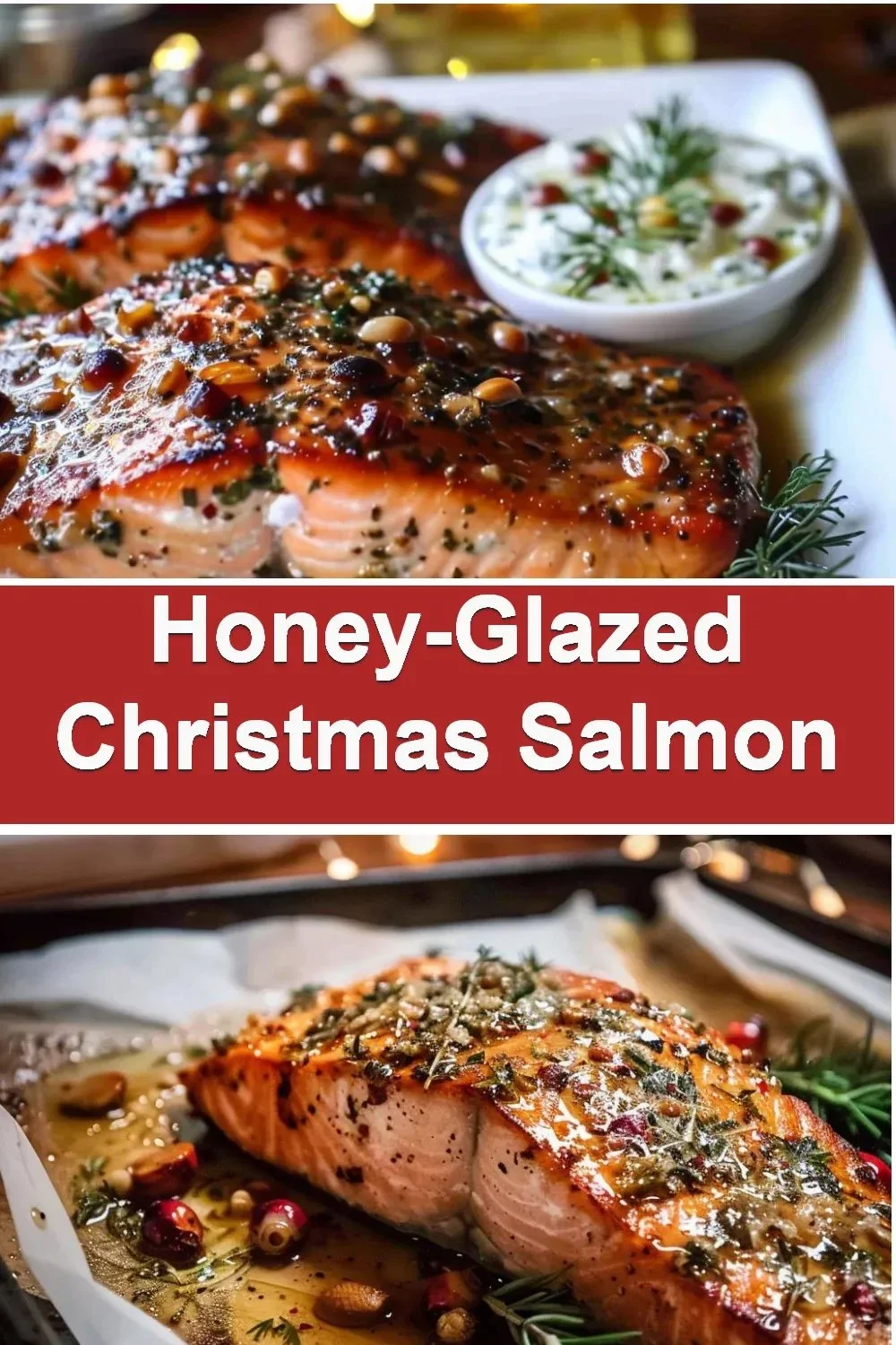 This Honey-Glazed Christmas Salmon is simple, fast, and full of flavor. It looks bright and festive on the table. The sweet glaze, creamy dill sauce, and tart cranberry-almond tapenade make each bite balanced and special.