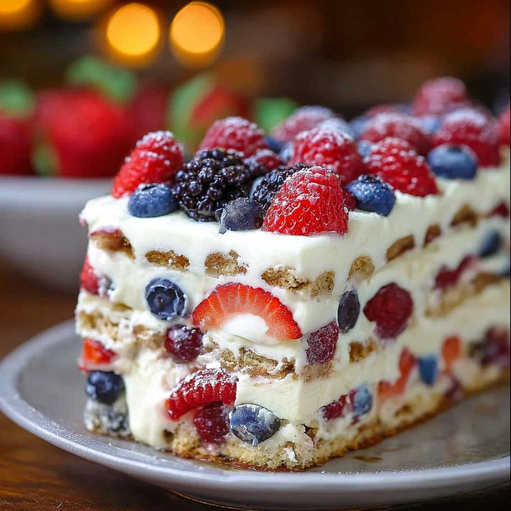 A refreshing and easy dessert made with layers of graham crackers, creamy filling, and fresh seasonal berries, perfect for summer gatherings.