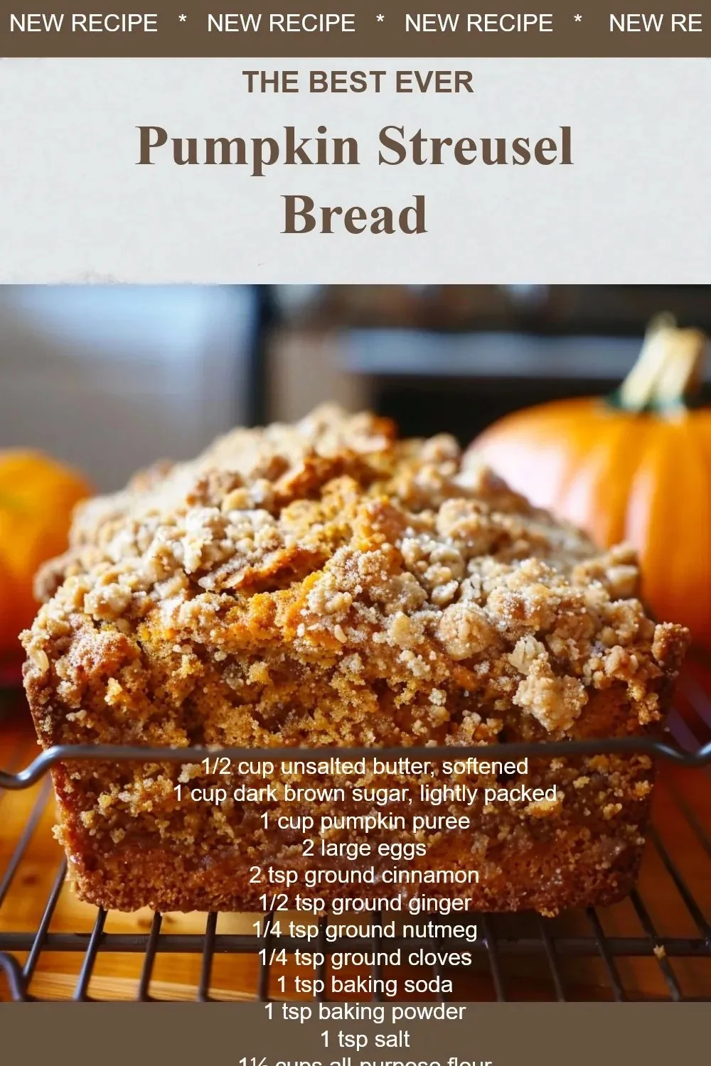 Keywords: pumpkin bread, streusel, glaze, cozy bread, fall recipe