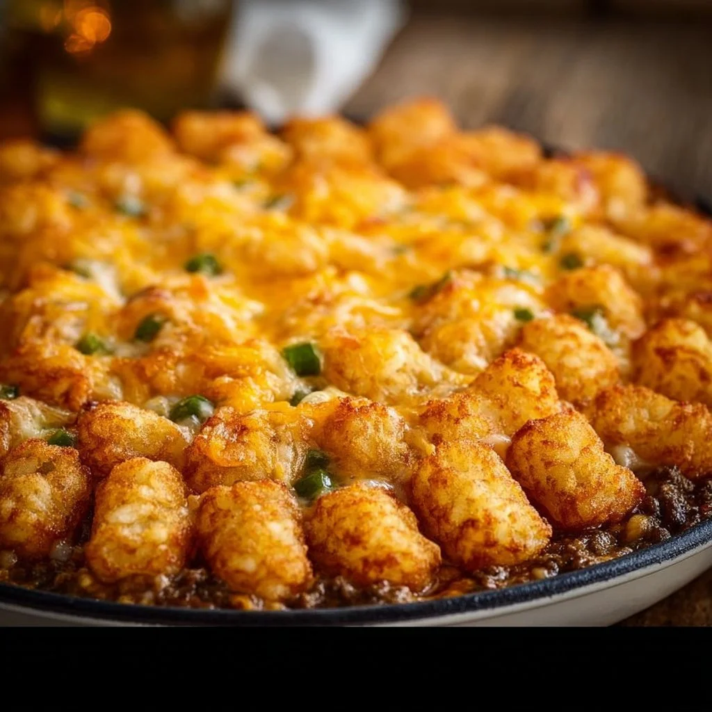 A fun and comforting dish made with ground beef, creamy mushroom soup, and crispy tater tots, perfect for family dinners.